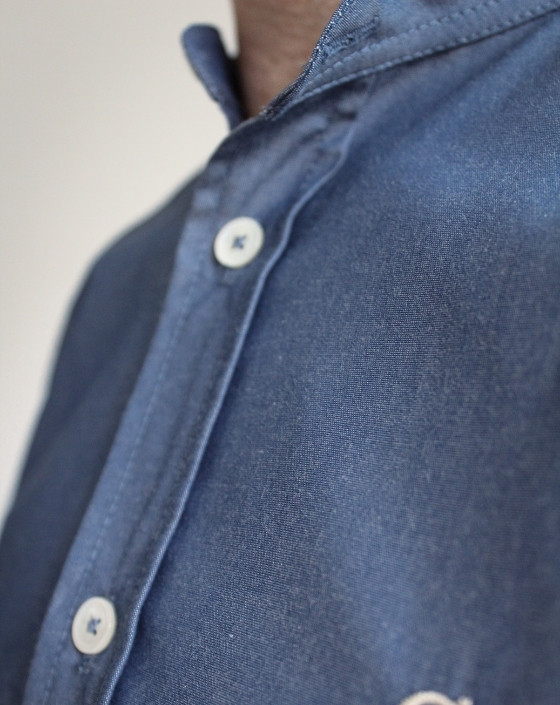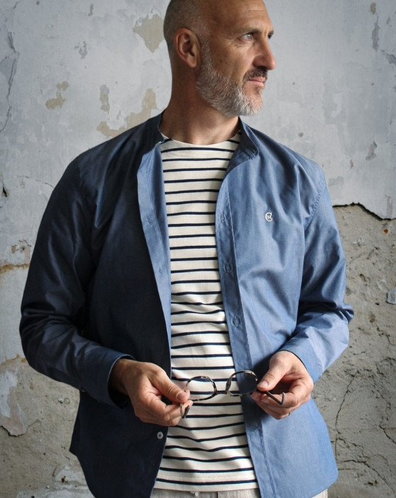 Une chemise en jean made in France… sans vraiment l’être. L’Amiral est taillée dans une popeline de coton bio GOTS, tissée en France : un tissu léger qui conserve une belle tenue. Col officier signature, boutons en nacre, broderie “M.C.”. Une pièce pensée et confectionnée dans notre atelier toulousain.