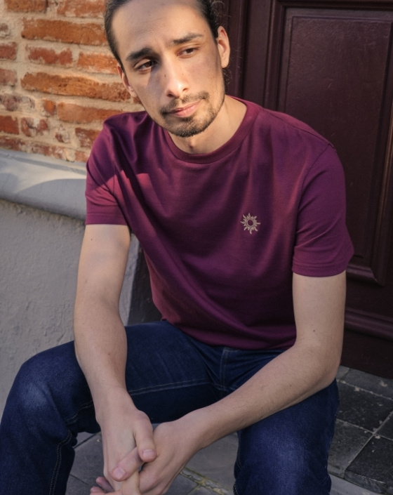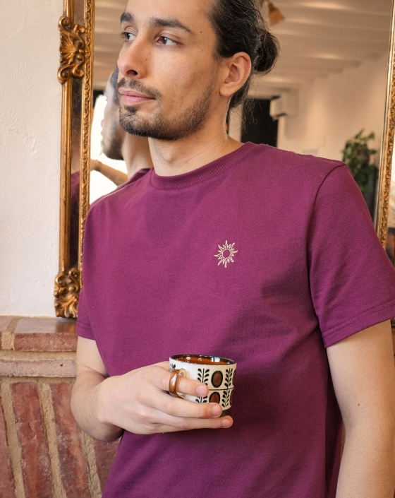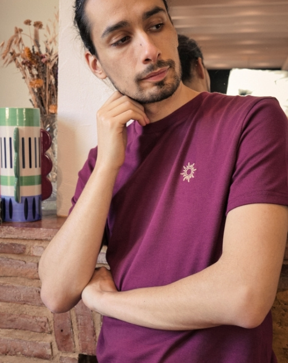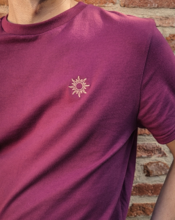 Le T-shirt Apollon illumine votre quotidien grâce à sa broderie soleil et sa couleur bordeaux. Confectionné en France dans un jersey 210 g/m² en 100 % coton biologique certifié GOTS, il allie douceur, confort et tenue au fil du temps. Sa coupe droite intemporelle en fait un essentiel responsable et élégant.