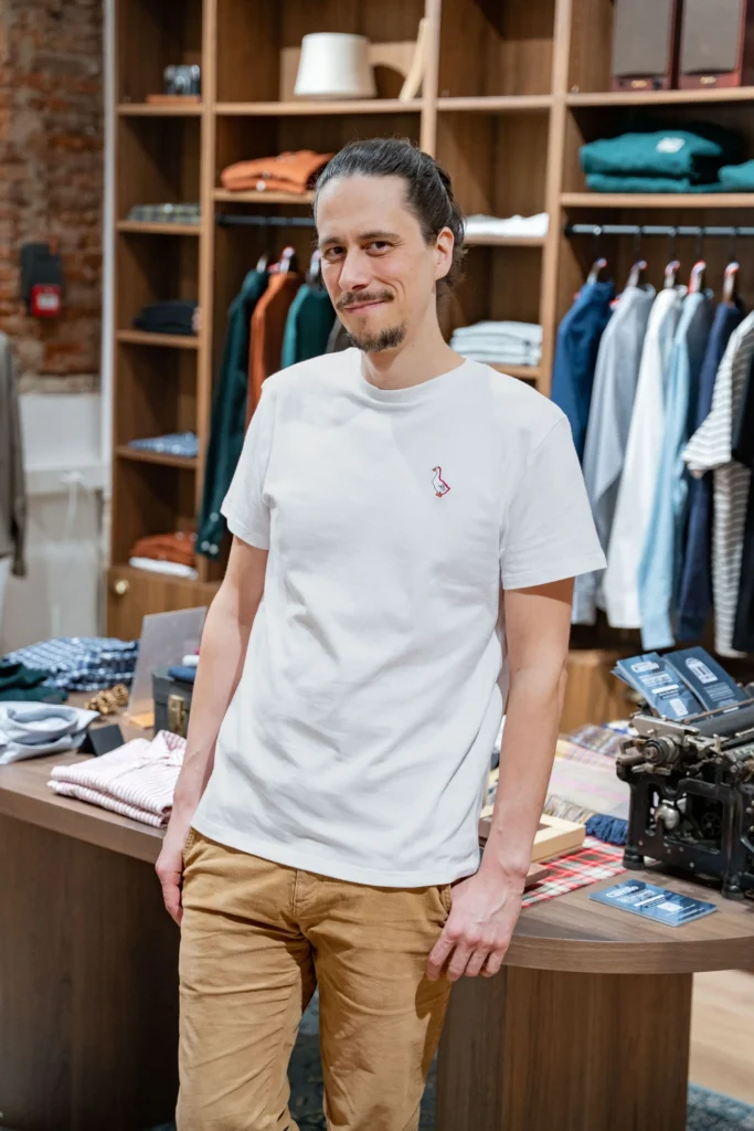 Notre t-shirt est confectionné à partir d’un jersey épais, tricoté dans les Hauts-de-France.